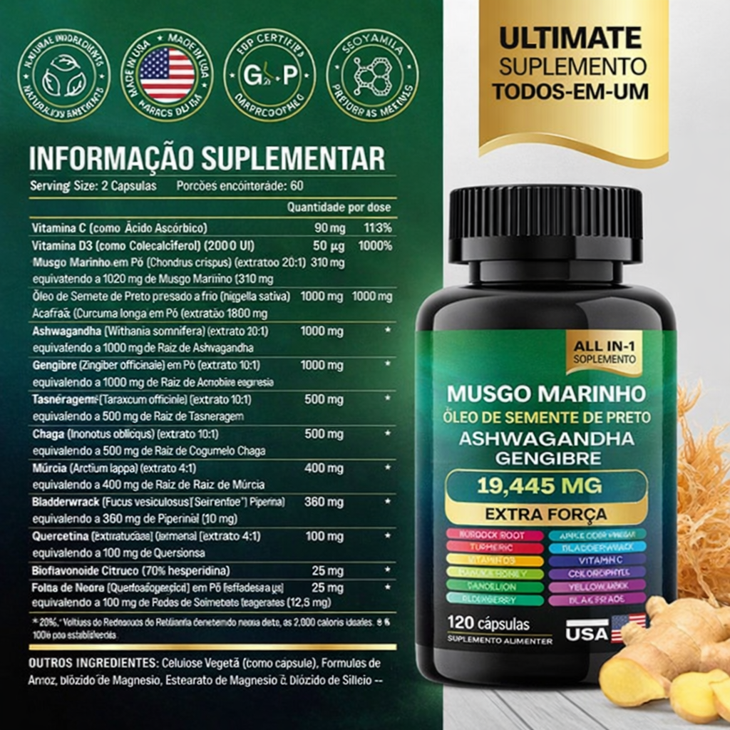 - ✔ Sea Moss: Reposição de 92 minerais essenciais.